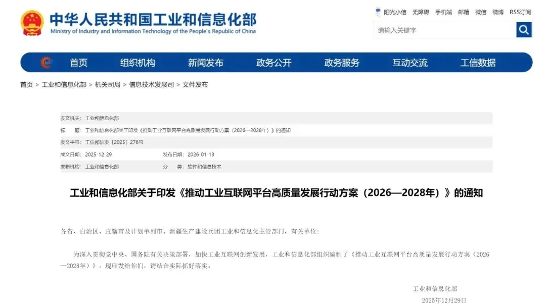 1月13日,工业和信息化部印发《推动工业互联网平台高质量发展行动方案(2026—2028年)》。《行动方案》在“平台规模化应用行动”中提出,增强企业应用质效。鼓励大企业深化平台应用,推动研发、生产、管理、服务等全流程资源要素的广泛连接与高效配置,提高跨部门、跨厂区、跨区域协同能力。支持中小企业加快“哑”设备数字化改造和关键设备升级,通过订阅、租赁等灵活方式运用云化软件、工业APP、工业智能体等平台资源。引导平台企业发展订单驱动、供应链金融等增值服务,助力中小企业融入大企业的供应链体系,依托平台实现业务协同与能力提升。推动工业互联网平台高质量发展行动方案