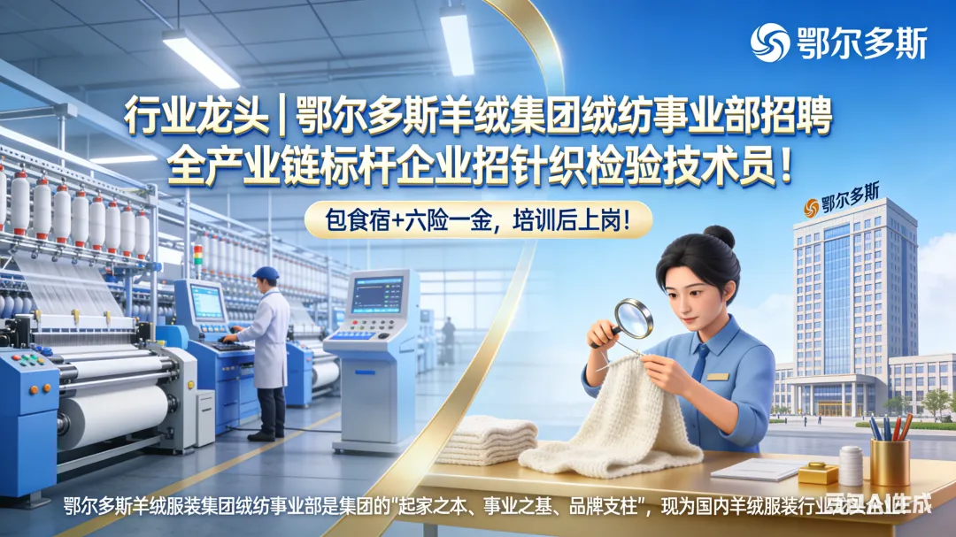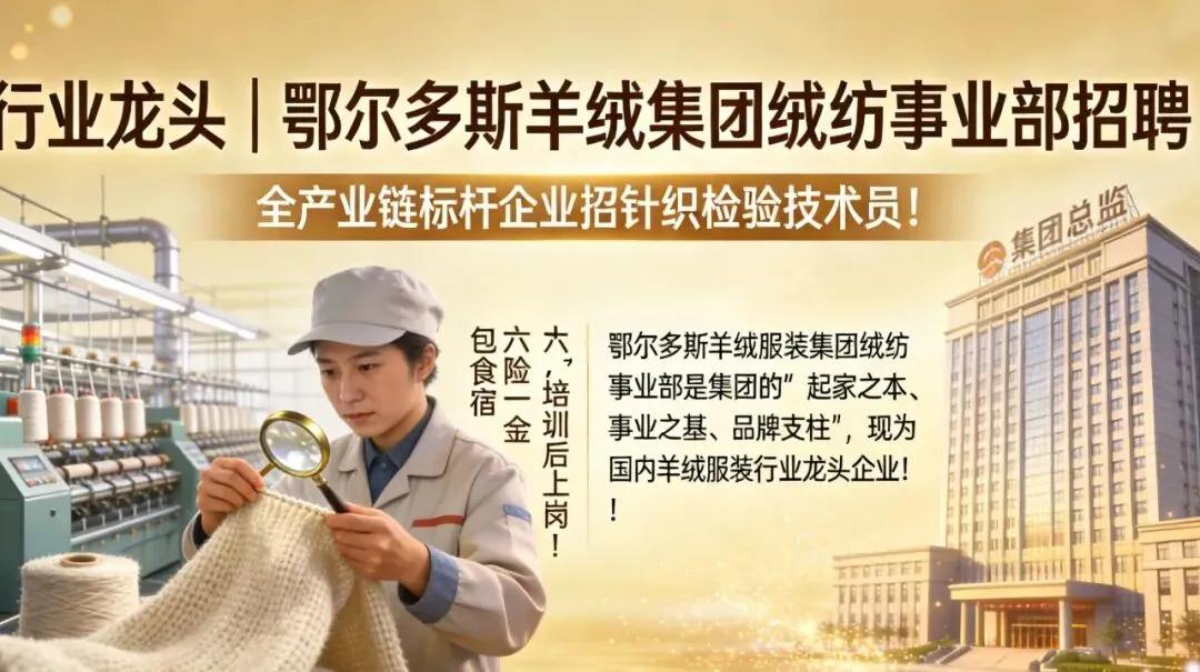 【行业龙头 | 鄂尔多斯羊绒集团绒纺事业部招聘】全产业链标杆企业招针织检验技术员!包食宿+六险一金,培训后上岗!