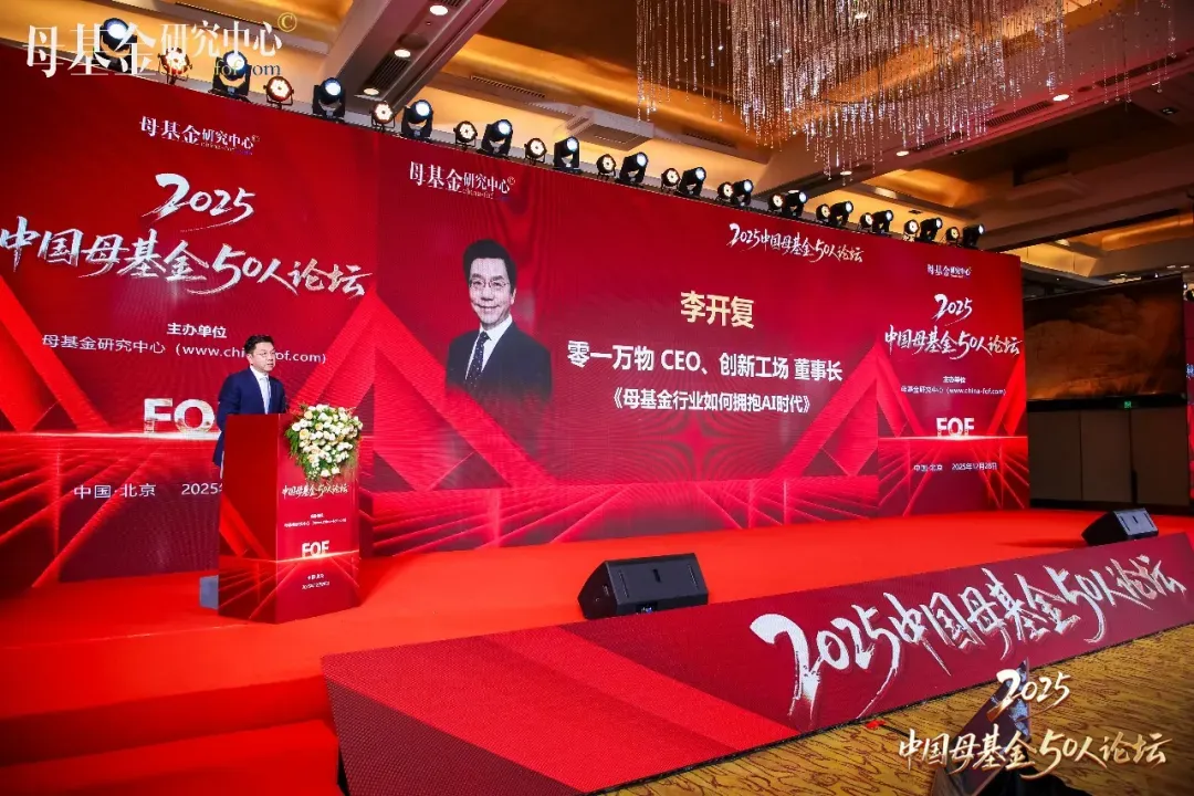 图为零一万物CEO、创新工场董事长 李开复零一万物CEO、创新工场董事长李开复应邀出席大会,并发表了题为《母基金行业如何拥抱AI时代》的主旨演讲。他在演讲中指出,生成式AI驱动的AI 2.0技术已从实验室走向成熟应用阶段,尤其是智能体正逐步成为企业真正的生产力,深度融入核心业务流程与生产场景,创造显著的经济价值。在智能体经济时代,AI Agent已成为推动企业转型的核心执行单元。他建议,已具备较好数字化基础的传统行业应加速将智能体引入核心业务,通过“一把手”驱动的模式推进智能化转型升级,以开拓规模化价值增长的新路径。