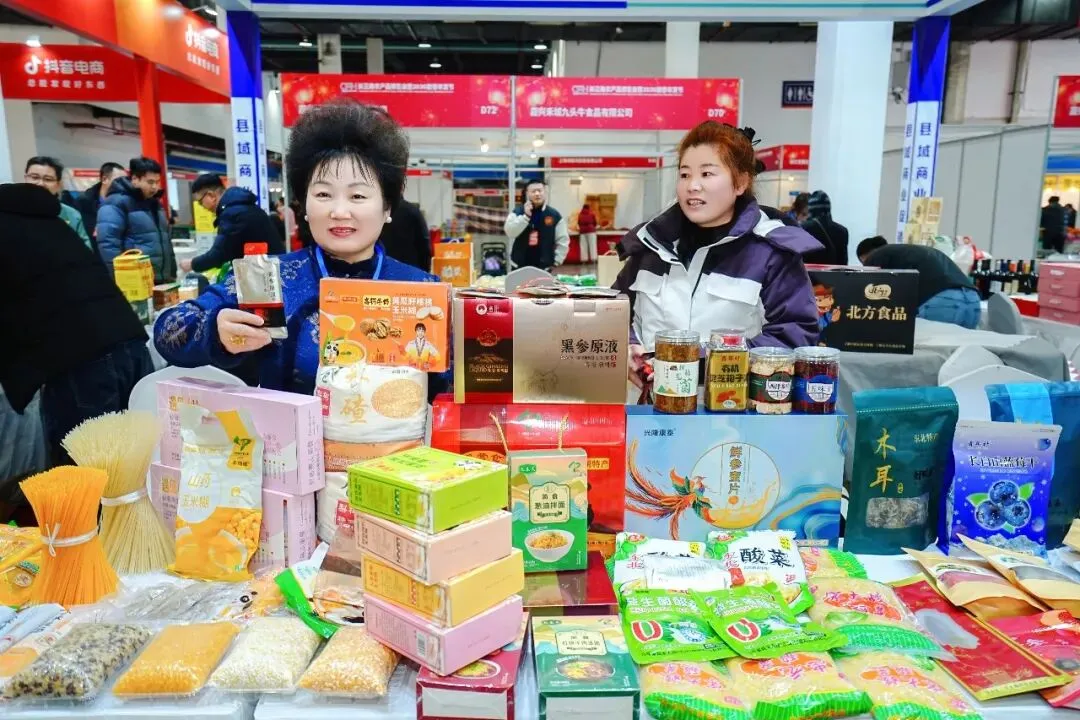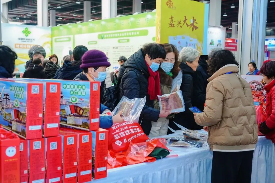 展会现场商品琳琅满目,不仅集中呈现长三角地区的优质农产品,更吸引了来自吉林、贵州、云南、山东、山西、四川、新疆、广东、内蒙古等全国多地的特色产品。展品类别齐全,涵盖粮油、果蔬、水产、零食糕点、腊味、过年礼盒,还延伸至家纺服装、箱包配饰、珍珠、茶叶等,满足消费者多样化的年货采购需求。