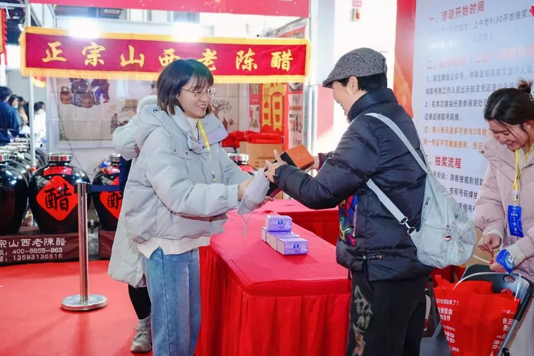 除了丰富的商品展销,现场还准备了多项文化互动活动:优雅的旗袍走秀彰显江南韵味,送福字、送春联传递新春祝福,惊喜抽奖环节更添欢乐气氛。此外,免费喝咖啡等体验活动也让市民在逛展之余轻松小憩,感受休闲时光。