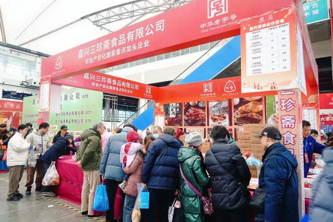 众多本地知名食品企业齐聚展会,包括五芳斋、三珍斋、南湖斋、江南船菜、文虎酱鸭、陈良酱菜、宏达烧鸡、大不同、牛家谣、张萃丰、谢师傅宴球、久达牛肉等,为市民带来地道风味与品质保障,奉上一场安全、健康、美味的年货盛宴。