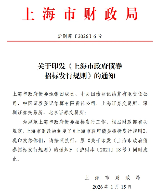 地方债柜台发行的上海市政府债券,发行利率按照首场公开发行利率确定,发行额度面向上海市财政局择优选取的柜台业务承办机构通过数量招标方式确定。