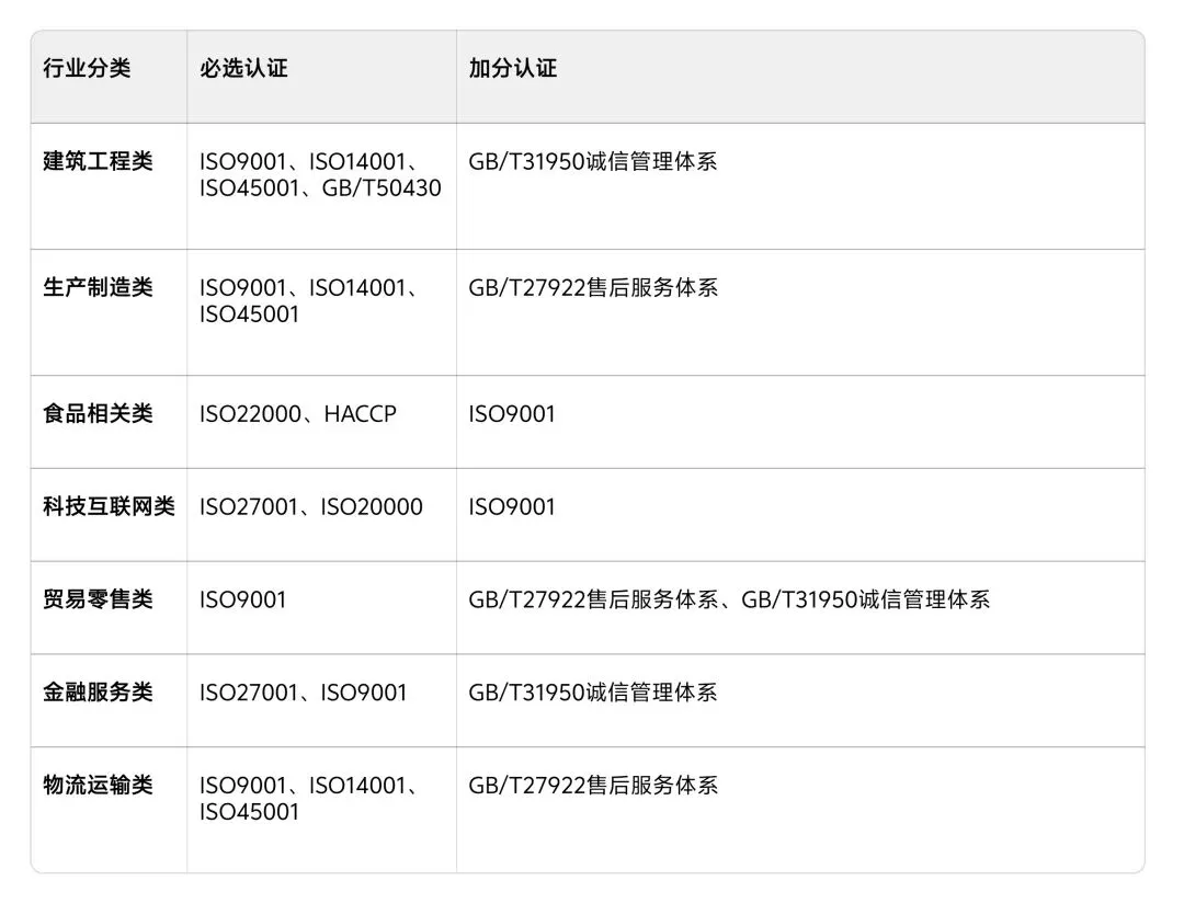 这是投标的基础门槛,能帮助企业优化流程、提升产品与服务质量,增强市场竞争力。拥有它,就等于拥有了参与大多数投标项目的资格。