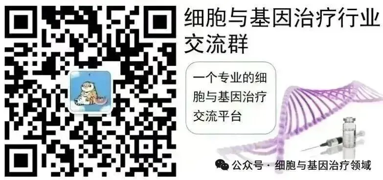 为促进细胞与基因治疗业内的合作和技术交流,媒体平台微信公众号“细胞与基因治疗领域”团队组建了细胞基因治疗专业交流群。长按下方二维码,添加小编微信进群。由于申请人数较多,添加微信时请备注:院校/企事业单位名称—专业/职务—姓名。如果您是PI/ 教授/主管及以上职务,还请注明。