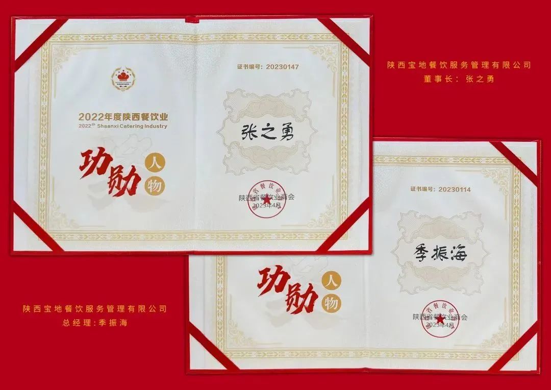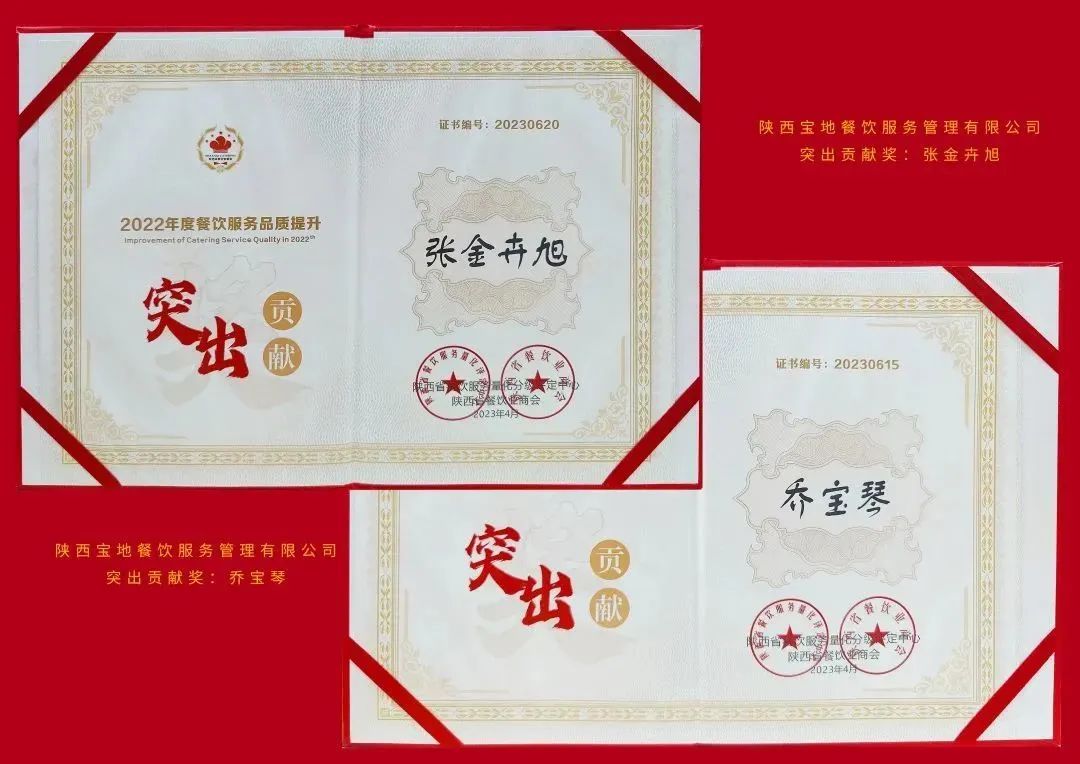 大会对“2022年度陕西餐饮业个人与企业”进行表彰。公司和多名个人获奖,宝地餐饮荣获“2022年度陕西餐饮业团餐品牌20强”、“2022年度陕西省餐饮服务量化等级认定A级单位”等多项奖项。