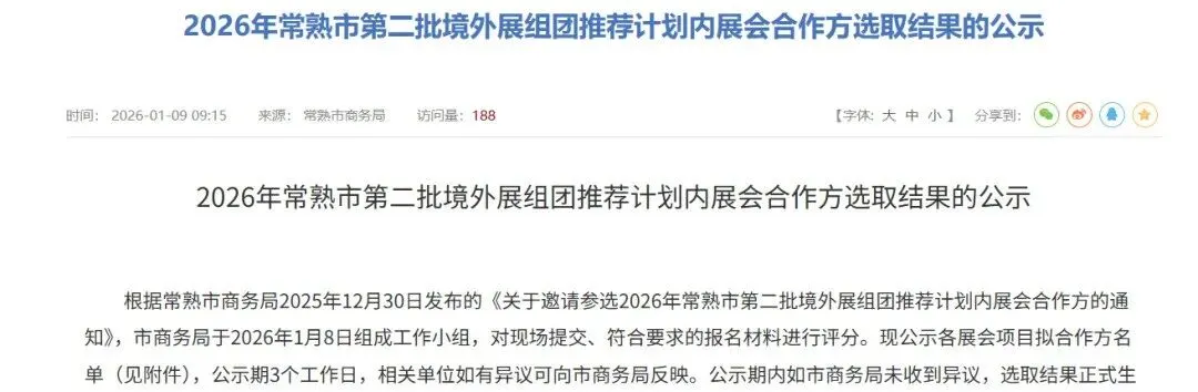 常熟市商务局推出境外展组团推荐计划,为企业提供强力支持: