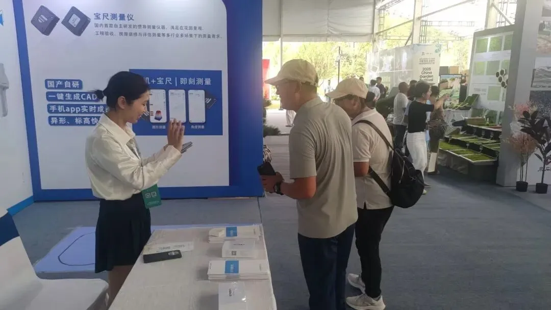 展会现场,宝尺测量仪凭借小巧的身形,便捷的测量方式引起了众多参展观众的浓厚兴趣。多样化的功能解决了不规则场地拐角多、弧形多的测量痛点,实时出图、直接导出CAD格式的优点得到了大家的一致好评。