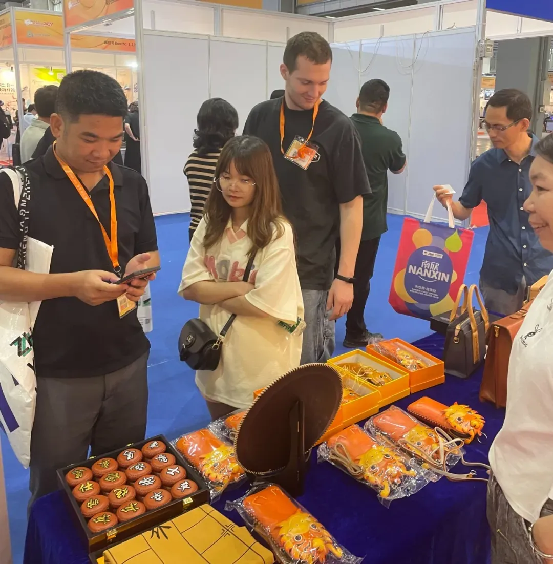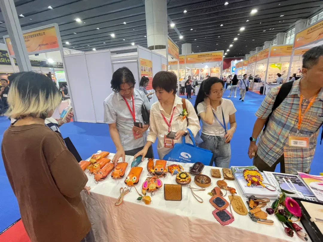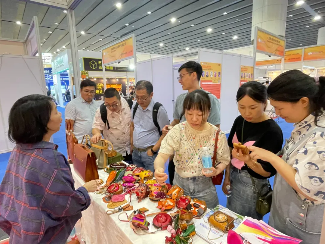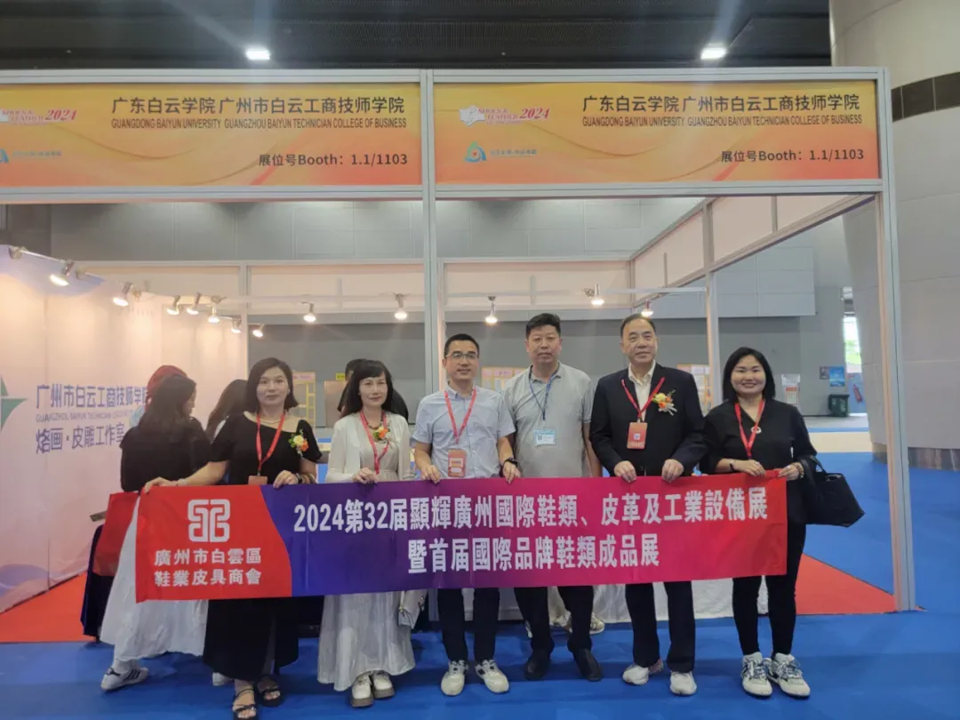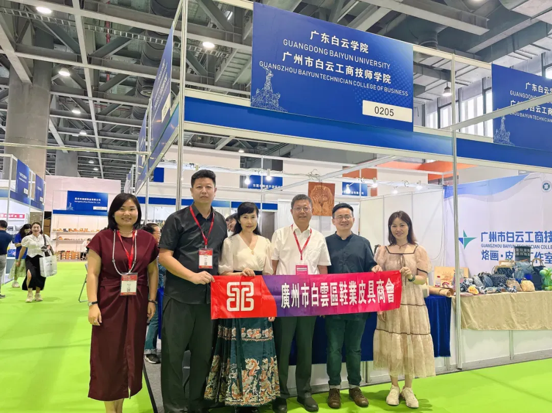 白云区鞋商会秘书长陈小红(左二)莅临展台