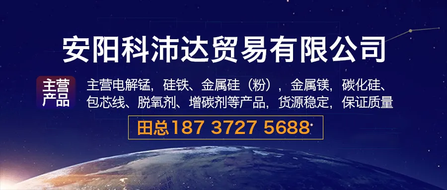 安阳科沛达贸易有限公司,主营电解锰,硅铁、金属硅(粉),金属镁,碳化硅、包芯线、脱氧剂、增碳剂等产品,货源稳定,保证质量。欢迎联系:田总135 2616 1636