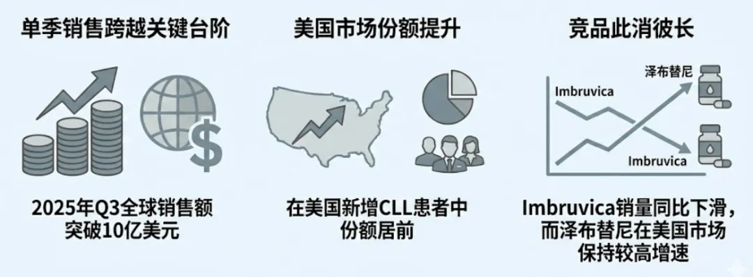在BTK抑制剂这一赛道,强生/艾伯维的Imbruvica(伊布替尼)曾长期占据主导地位。泽布替尼的关键策略在于:不回避正面对比,而是通过头对头研究建立临床与安全性层面的可比优势。