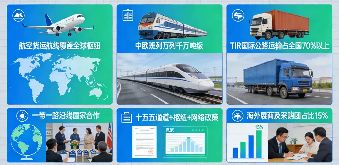 依托郑州航空港“四港联动”的独特格局——航空货运航线覆盖全球主要枢纽、中欧班列“万列千万吨级”开行能力、TIR国际公路运输占全国70%以上的优势,大会将深化“一带一路”沿线国家及地区合作,邀请海外展商及采购团组团参展,预计外贸货主买家占比提升至15%,助力企业拓展国际合作版图,对接“十五五”“通道+枢纽+网络”政策,抢占物流体系升级先机。