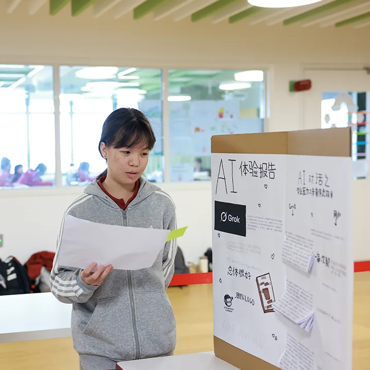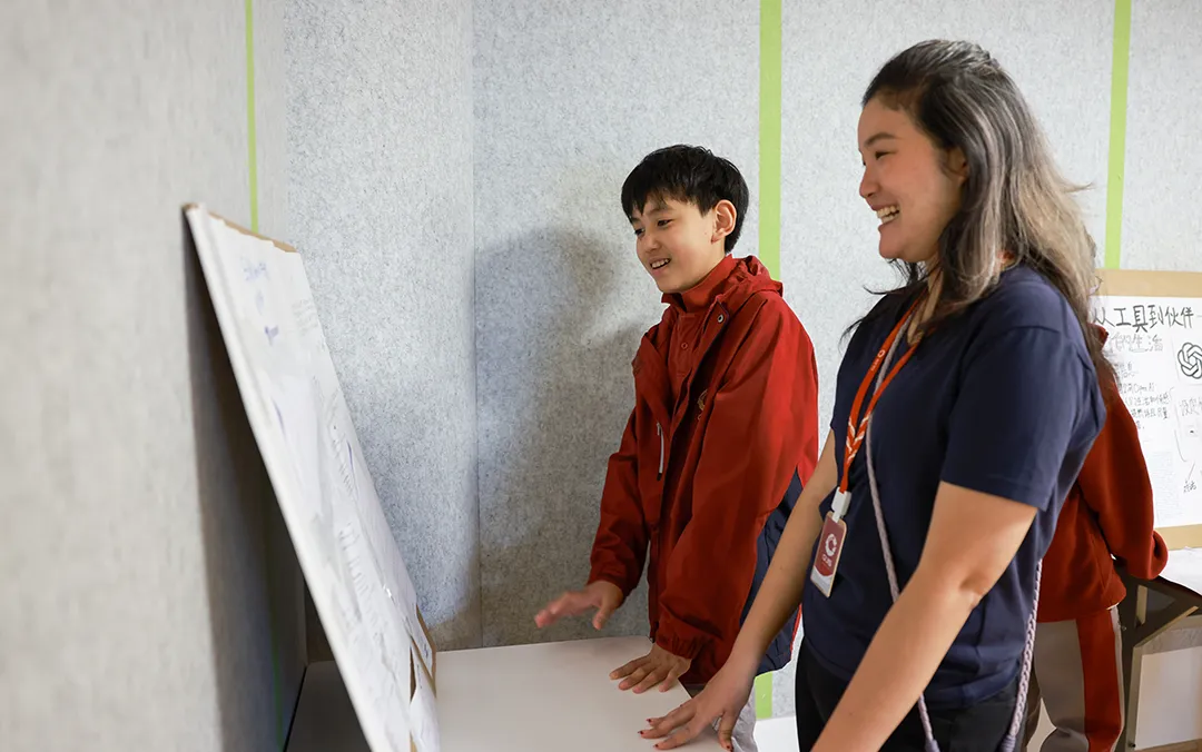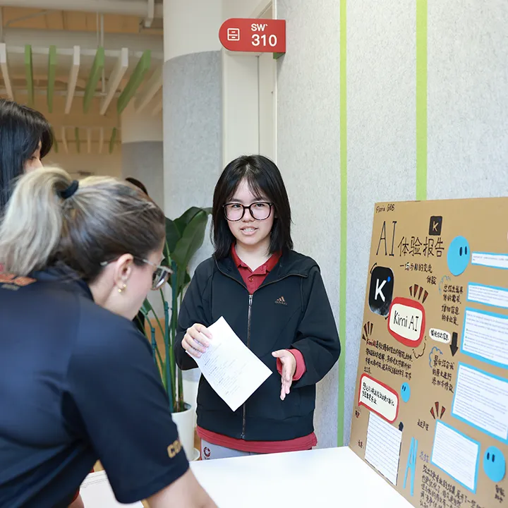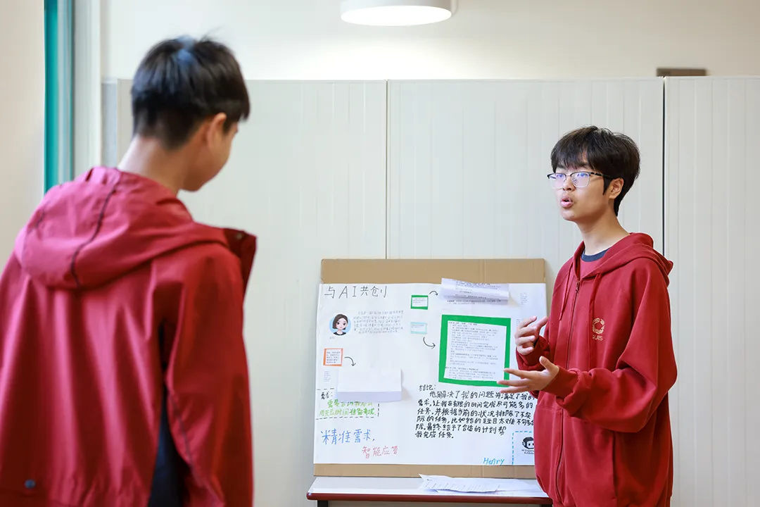 正如本次博览会负责教师Ms. Miranda Li所分享的,这一学习项目的重点,并不在于“教学生用AI”,而在于引导他们在“AI深度介入交流与表达的真实体验”中形成判断。