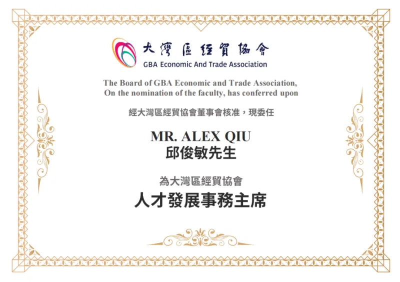 作为大湾区经贸协会首位 “人才事务发展主席”,同时也是此次会上人才服务领域唯一专业界别代表,寰行盛世副总裁邱俊敏先生受到香港特别行政区政府商务及经济发展局副局长陈百里博士的亲切接待。
