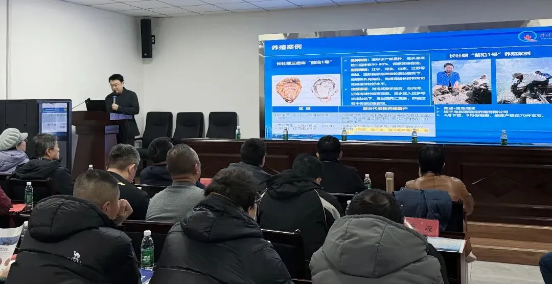 会上,前沿种业介绍了企业研发情况与2026年度主推品种,并就养殖户关注的问题进行了解析;中国科学院海洋研究所研究员、山东省牡蛎种业技术创新中心主任李莉老师,和中国水产科学研究院黄海水产研究所研究员、山东省牡蛎种业技术创新中心专家白昌明老师就环境胁迫性疾病防控、主要病害与防控体系构建等做了主题分享,来自海阳地区、烟台牟平等地的近百名养殖业户现场参会。
