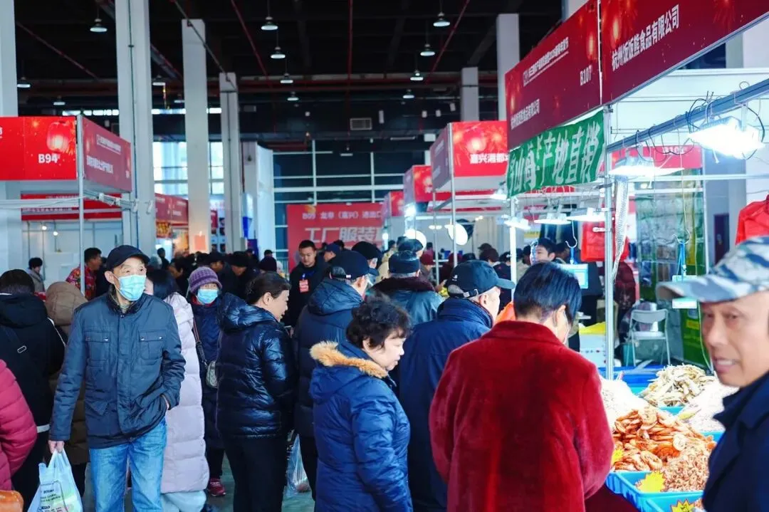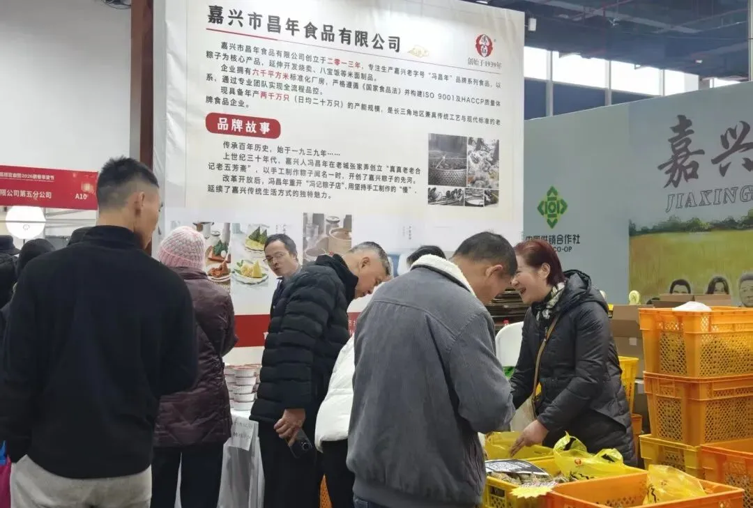 展会现场商品琳琅满目,从五芳斋粽子到宏达烧鸡,从手工糕点到山珍海货,本次展会不仅吸引了嘉兴本地知名企业带来的名特优产品,更有来自长三角各地的优质农产品和日用品,使整个展览现场变成了嘉兴市民一站式采集年货的集结地。