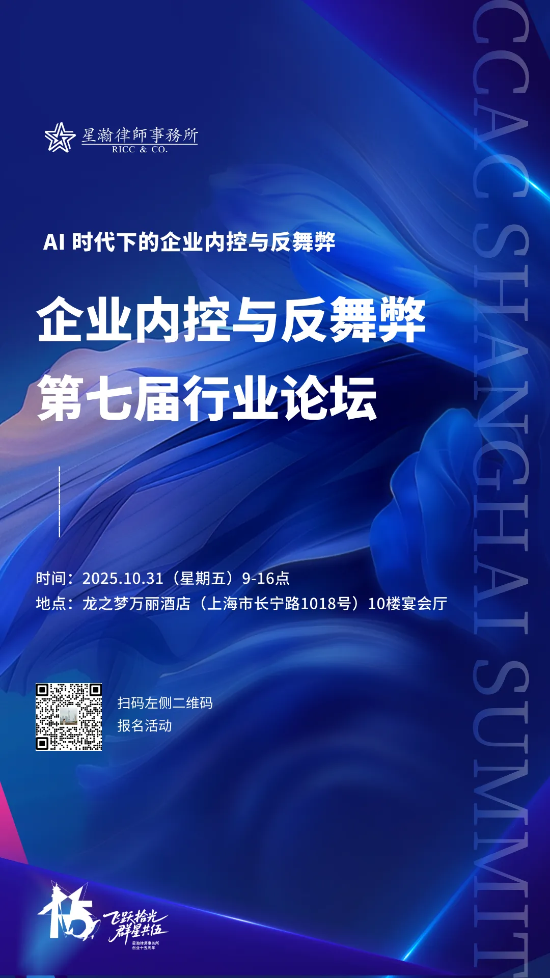 为响应国家数字经济发展战略号召,聚焦新时代企业治理需求,企业内控与反舞弊第七届行业论坛重点聚焦反舞弊工作场景下的AI应用,并定于2025年10月31日(周五)在上海举行,诚邀您的参会!
