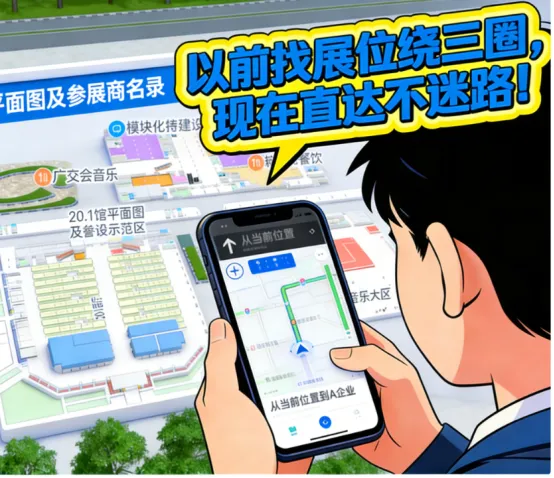 智慧导航放大招啦!蓝牙+北斗+5G,更多区域解锁“展位级导航服务”。
