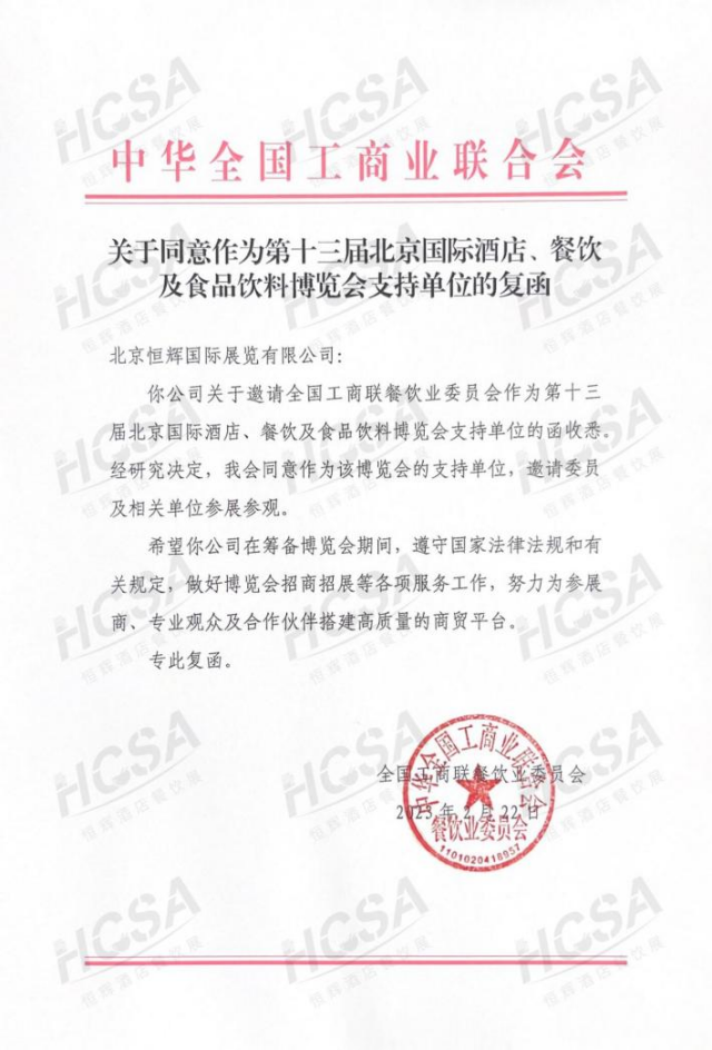作为中国餐饮业的重要组成部分,全国工商联餐饮业委员会一直致力于推动行业发展和创新,为企业提供更好的服务和支持。组织参加北京酒店餐饮博览会,也是全国工商联餐饮业委员会积极响应国家政策,促进行业交流和合作的具体举措。为参展企业和专业观众带来更多的商机和交流机会。同时,也期待更多的供应商、采购商及业内人士参与到这一盛会中来,共同分享行业的发展成果和未来的发展前景。