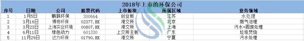2018年上市的环保企业业务仍然集中于污水处理、固废处理、烟气治理等领域,其中在内地上市的绿色动力和鹏鹞环保,仍然以业界领军企业为主,一个是国内首家A+H
