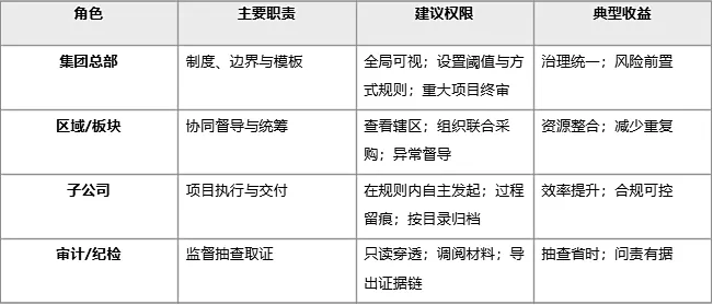 把组织架构“上墙”(数字化)、把制度写进权限(可执行)、把过程变成证据链(可追溯),集团采购才能真正“一盘棋”。