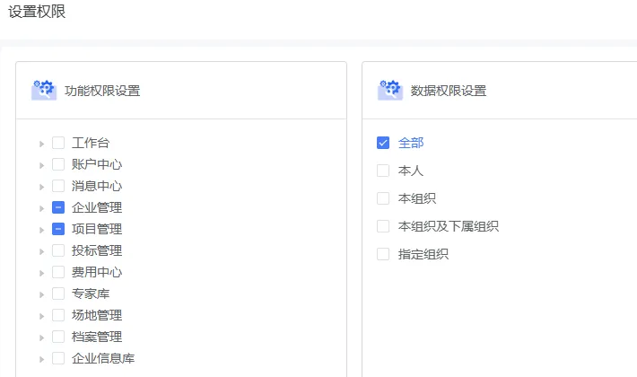 ● 功能权限:谁能使用专家库、供应商、合同、档案等模块
