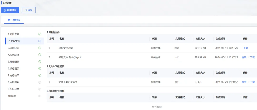 ● 合同与归档:归档目录标准化,关键材料一键调阅与导出