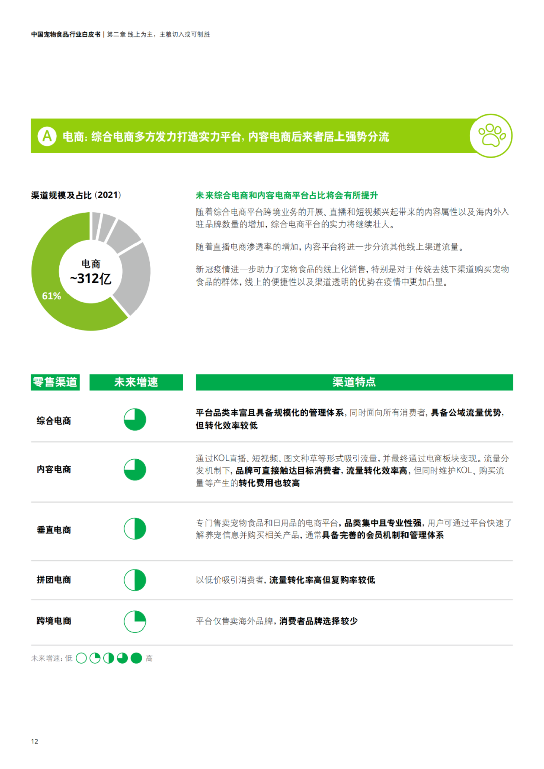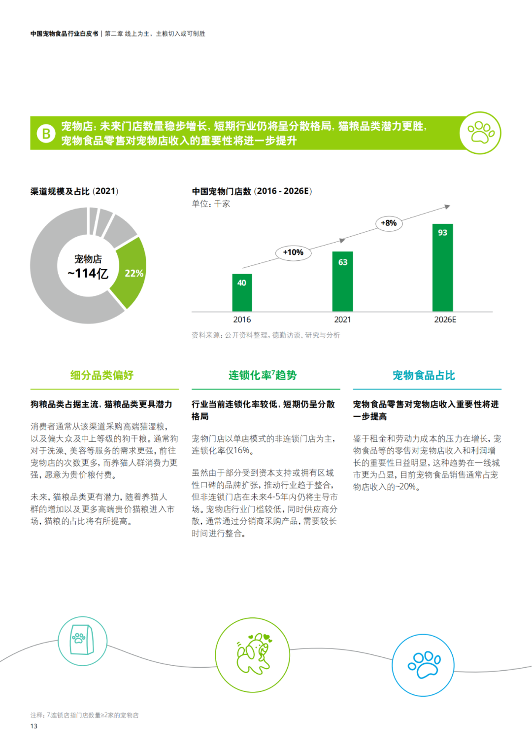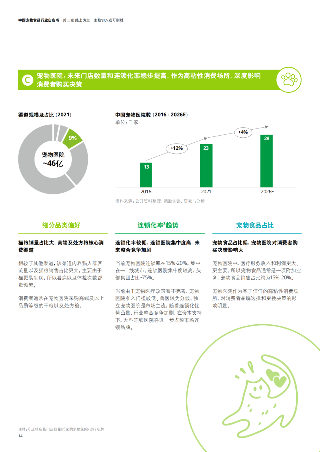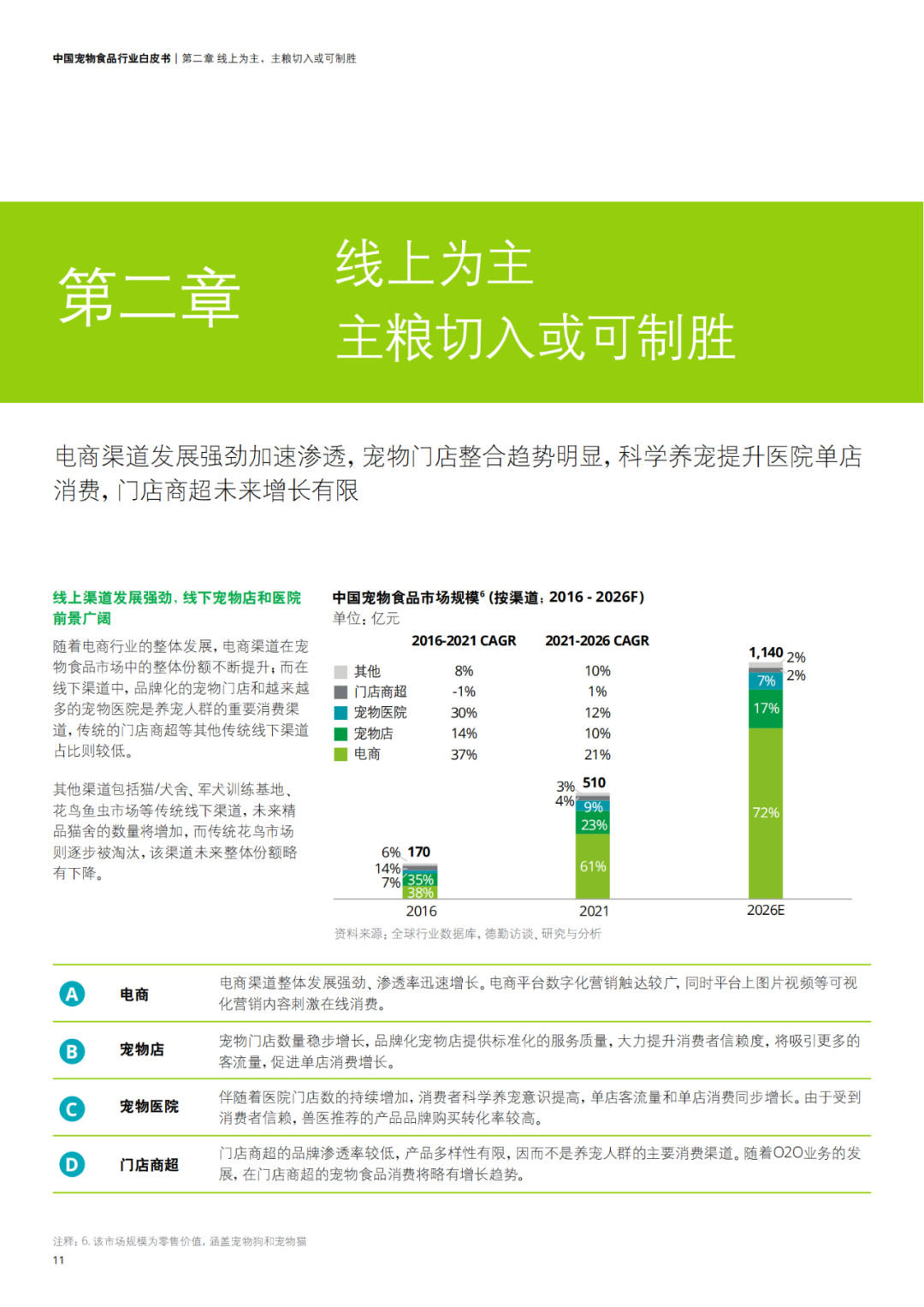 在市场规模论述的基础上,报告还对品牌市场渠道发展策略,生产工厂建设策略,市场竞争格局以及宠物企业资本运作等内容进行了详细分析。