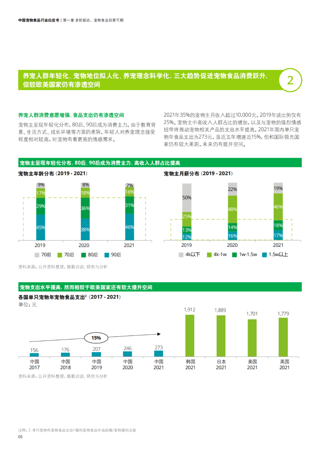 近日,德勤咨询发布2022年中国宠物食品行业白皮书,该报告从多方面对中国宠物食品市场进行了综合分析,具有较强的借鉴参考价值。报告指出,2021年我国宠物食品市场规模约510亿元,其中宠物主粮占比约86%,宠物零食占比约8%,但保持显著高于行业整体的增速。