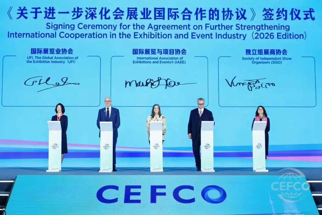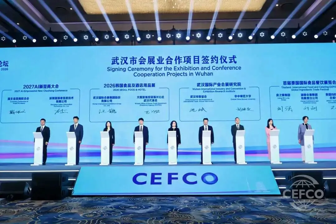 论坛期间,中国贸促会和4家会展业国际组织共同签署《关于进一步深化会展业国际合作的协议》,与新加坡旅游局商签《关于深化中国-新加坡展览业合作备忘录》,并发布《中国展览经济发展报告2025》。武汉市集中签约10个国际化会展项目,包括中国材料大会、中国国际酒业博览会、泰国国际食品餐饮展览会、九峰山论坛、AI新楚商大会等。