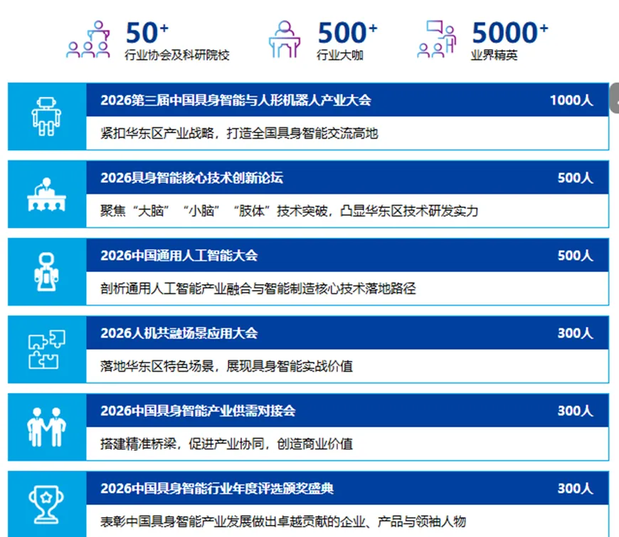 2026中国(杭州)具身智能机器人产业大会暨展览会将搭配“两会两展+行业发展论坛+新产品新技术发布会”的模式,构建“会、展、技术、趋势”四位一体的核心平台体系,重点邀请具身智能头部企业参与,展示人形机器人、陪伴机器人、工业机器人等相关应用,在这个充满机遇与挑战的时代,让我们共同拥抱AI,携手创造更加美好的未来。
