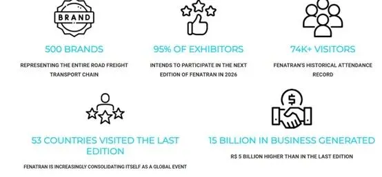 FENATRAN 是拉丁美洲道路货运领域的主要展会,每两年举办一次,被认为是该行业最大的商务、社交和体验交流盛会。在每一届展会中,FENATRAN 都汇聚了最多的专业人士社区以及行业的主要参与者。卡车制造商和道路运输设备制造商与整个运输链的企业共同参与,从仓储内物流和技术公司到城市末端配送解决方案。该活动在高质量内容方面也具有标杆性,无论是在其数字平台上还是在展会期间,观众都有机会在 Fenatran 体验区驾驶行业车辆进行试驾体验。