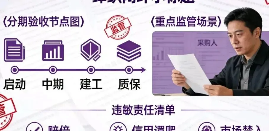 新规强化后端履约监管,形成“中标不是终点,履约才是核心”的监管逻辑。对于异常低价审查后仍中标的项目,采购人将实施重点监管,履约验收需覆盖每一项技术和商务要求,逐项核对落实情况。