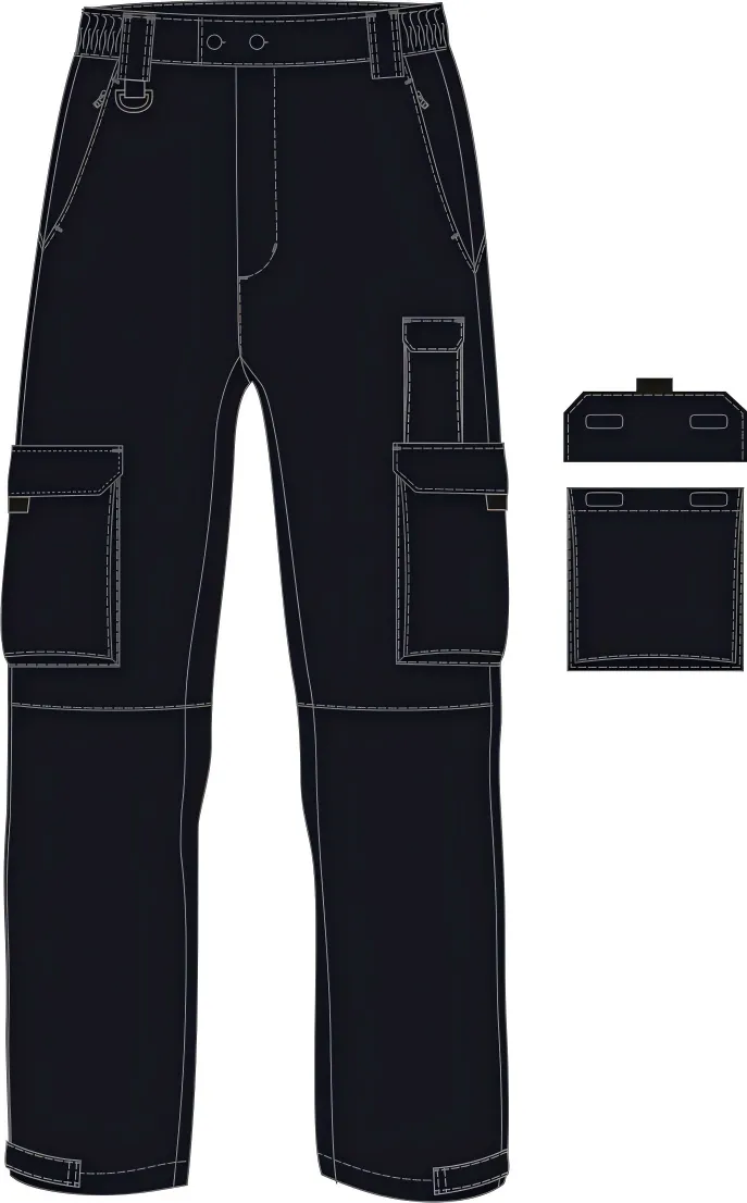 5 | 裤子 | 1.服装样式:见图片; 2.面料颜色:藏青色 3.网眼布上身里料颜色:藏青色 4.涤丝绸下身、侧袋里料颜色:藏青色5.缝纫线颜色:与布料颜色相适合 6.尼龙拉链颜色: 黑色 7.粘扣带颜色:藏青色 8.松紧带颜色:白色 9.锦纶横纹织带颜色:黑色 10.塑料环颜色: 黑色 11.金属钮扣颜色:黑古铜色