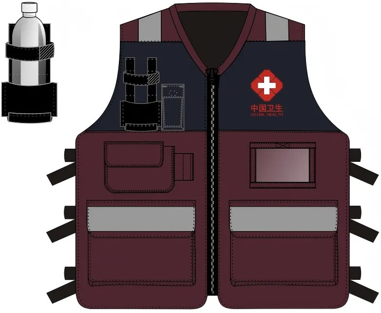 8 | 应急马甲 | 1.服装样式:见图片; 2.面料颜色绣红色/藏青色 3.里料颜色:黑色 4.缝纫线颜色:与布料颜色相适合 5.注塑拉链颜色: 黑色 6.尼龙织带颜色:黑色 7.粘扣带颜色:黑色 8.松紧带颜色:黑色 9.反光材料颜色:反光亮银色 10.注塑扣颜色:黑色