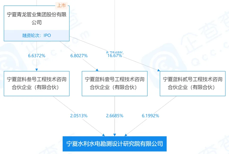 2019年7月17日,青龙管业发公告称,为延伸产业链、提升核心竞争力,公司拟以现金方式收购宁夏水利水电勘测设计研究院有限公司(简称“宁夏水利设计院”)股东所持宁夏水利设计院86.04%的股权。本次交易价款总额为2.53亿元,公司拟使用募集资金及自有、自筹资金支付,其中募集资金1.79亿元,其余为自有资金或自筹资金。企查查资料显示,截止目前,青龙管业持有宁夏水利设计院72.4068%股份。