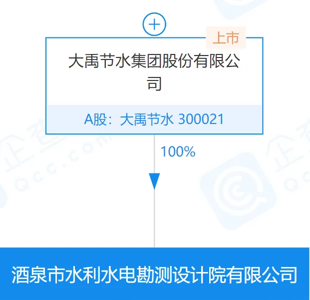 企查查数据显示,大禹节水目前持有酒泉市水利水电勘测设计院100%股份。