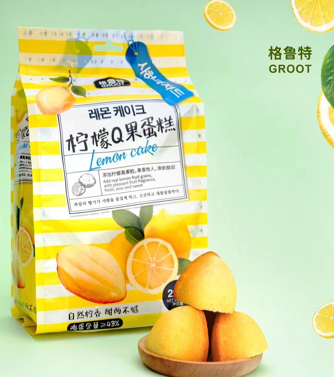 产品介绍:①柠檬Q果蛋糕,加入柠檬丁真果粒,鸡蛋含量43%以上!用料考究,品质高端,价格美丽!