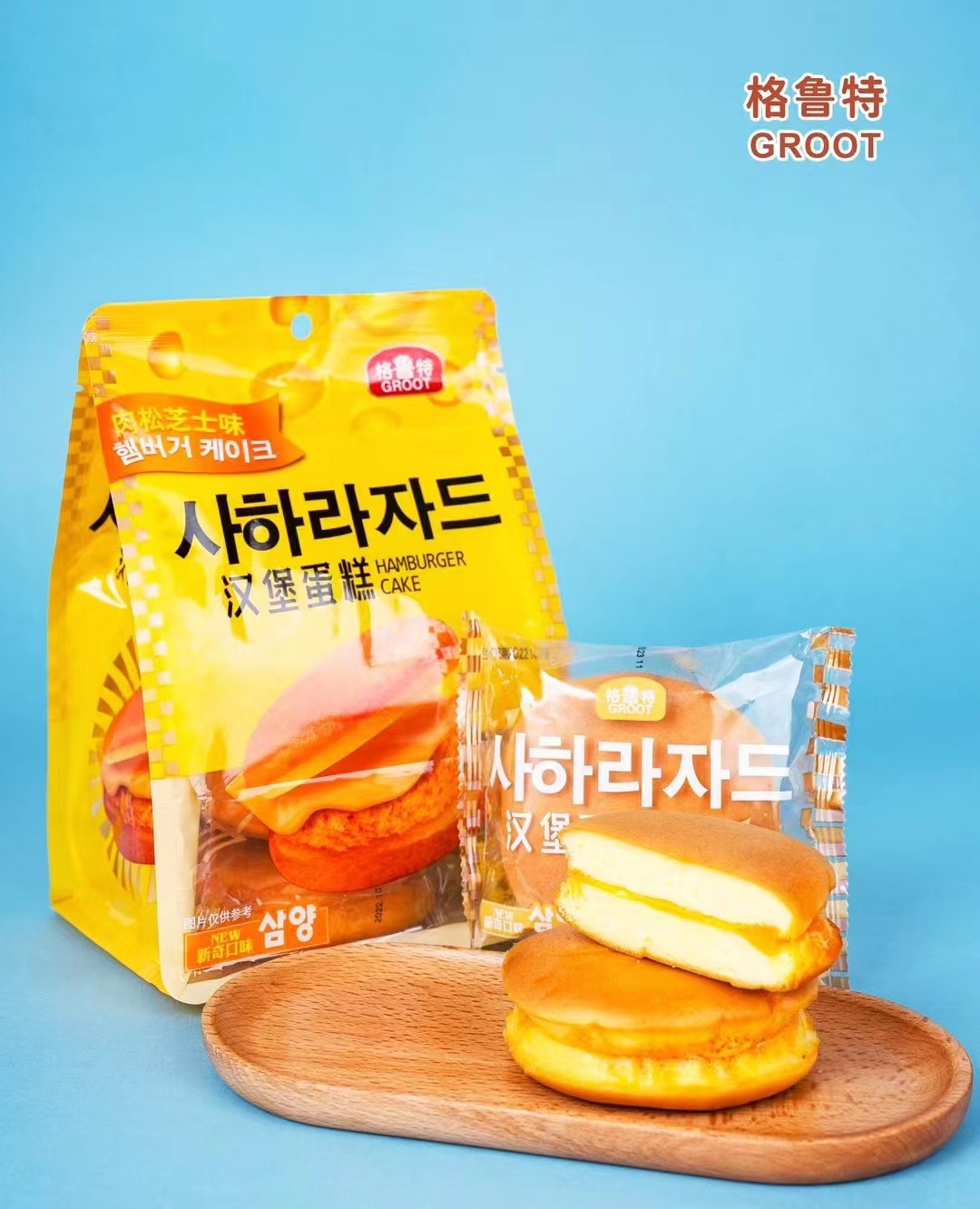 ②汉堡蛋糕,加入高品质肉松,鸡蛋含量43%以上!口感绵密,咸甜适中,好吃,健康!