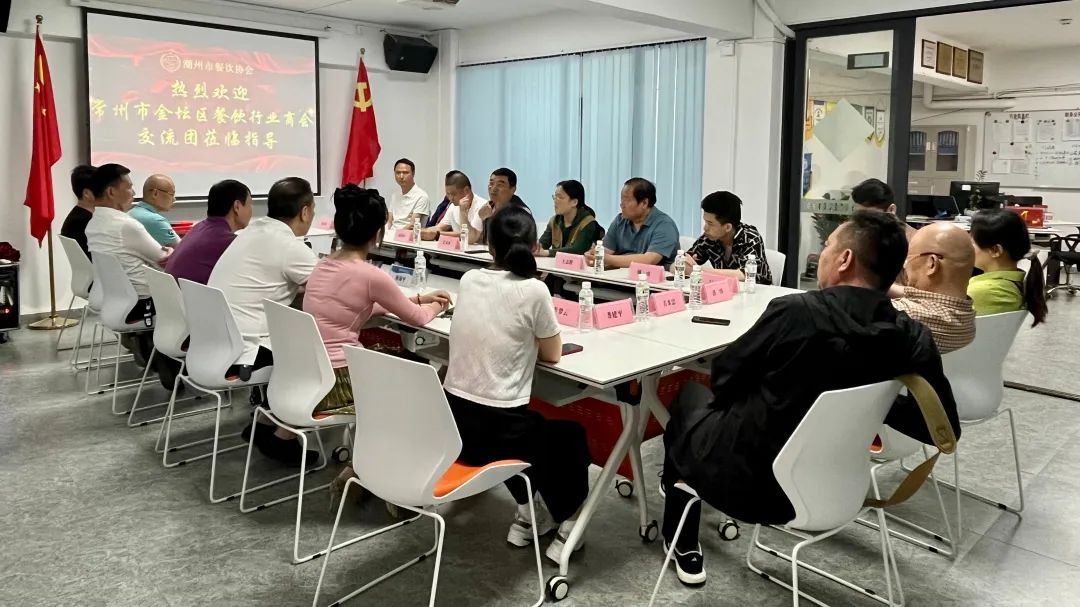 会议开始前,常州市金坛区餐饮行业商会和我会双方分别介绍各自协会的主要成员,就双方发展现状开展交流。期间进行亲切交谈,纷纷介绍当地餐饮的特色和有趣故事,相互分享学习两地美食的文化特色。