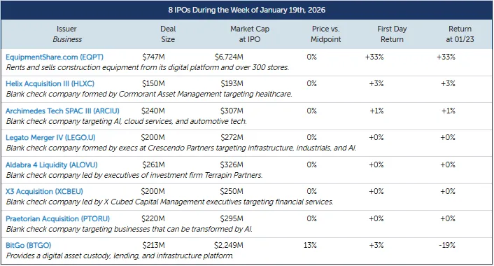 美国IPO周报回顾:设备租赁市场上涨,加密货币公司IPO数量暴跌,上周仅有两家公司上市