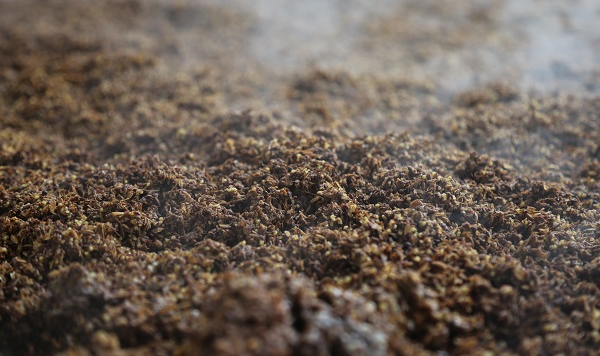 翻沙酒烤完之后,剩余的酒糟,还有少量香味成分残留在酒糟中将烤完翻沙酒的酒糟,与完全粉碎的新高粱一起,按照酱香酒工艺再操作一个周期,之后每次加新粮,操作3~5个轮次,其中糖化发酵剂有大曲、麸曲、糖化酶所得的酒称为碎沙酒,按大曲用量高低,品质也依次从高到低排序,分大曲碎沙、麸曲碎沙、糖化酶碎沙。