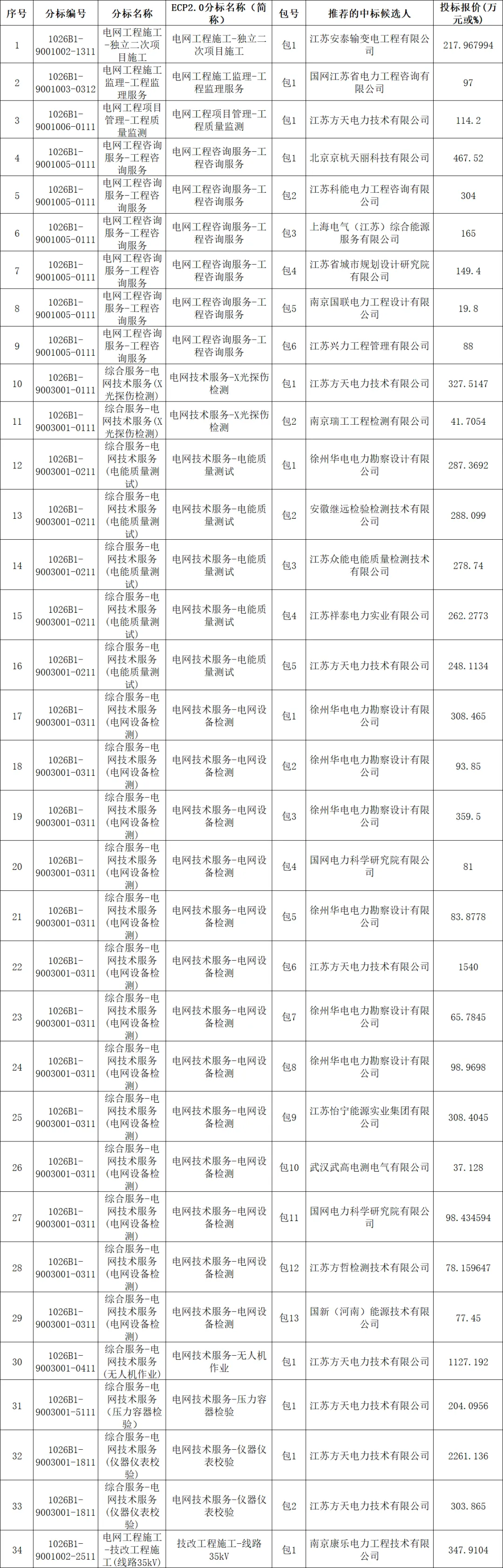 国网江苏省电力有限公司2026年工程服务预安排项目公开招标采购项目评标工作已经结束,依据《中华人民共和国招标投标法实施条例》、《招标公告和公示信息发布管理办法》对中标候选人公示的规定,现将评标委员会推荐的中标候选人予以公示,公示期至1月29日24点00分。投标人或者其他利害关系人若对评标结果有异议的,请在中标候选人公示期间以书面形式(传真)提出。