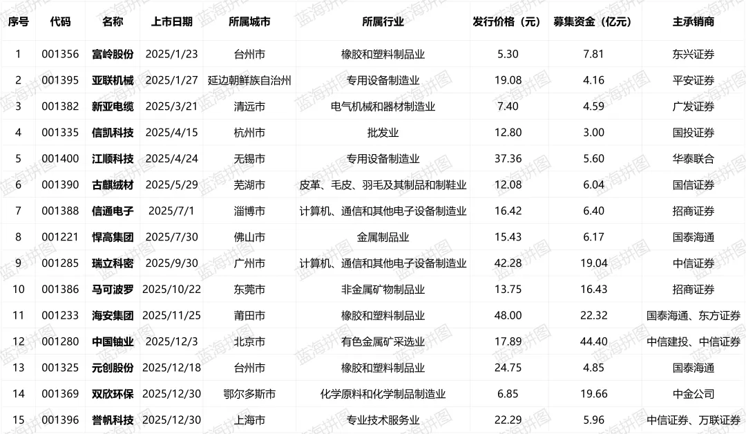 2025年,深主板上市15家公司,按首发市盈率划分: