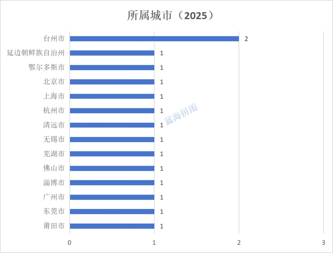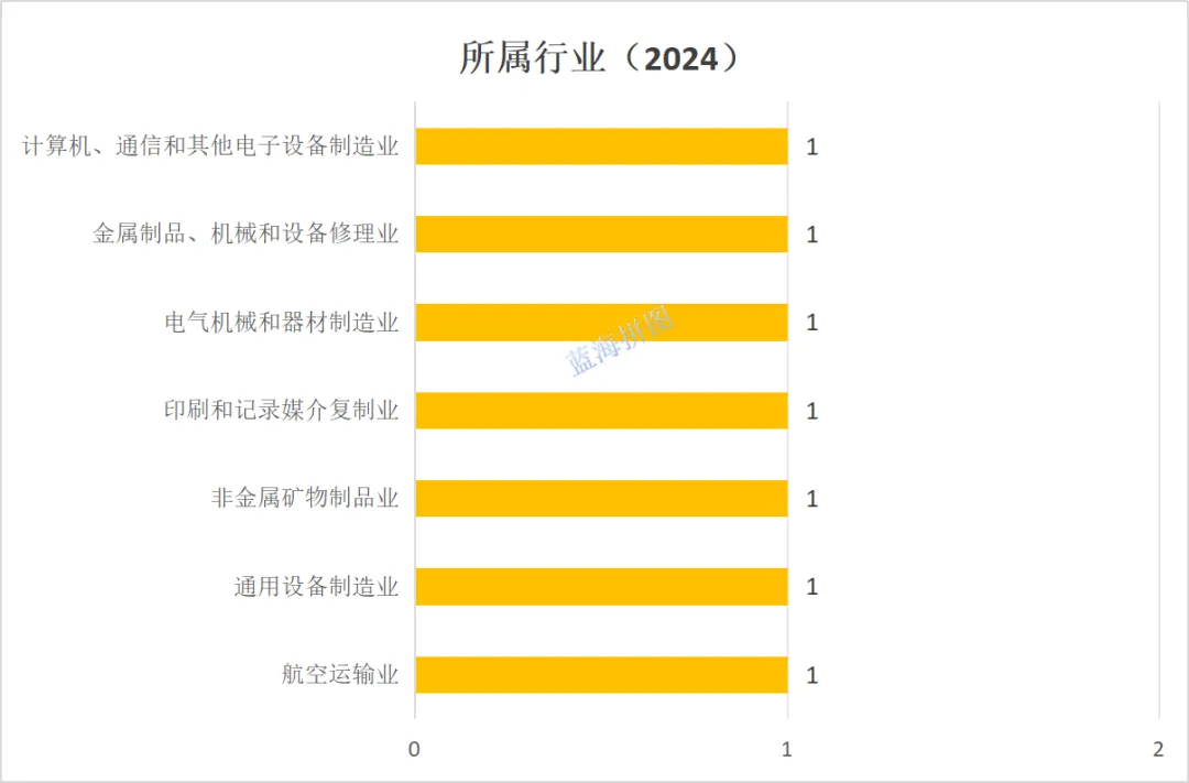 前三的行业分别是:橡胶和塑料制品业(3)、计算机、通信和其他电子设备制造业(2)、专用设备制造业(2)。