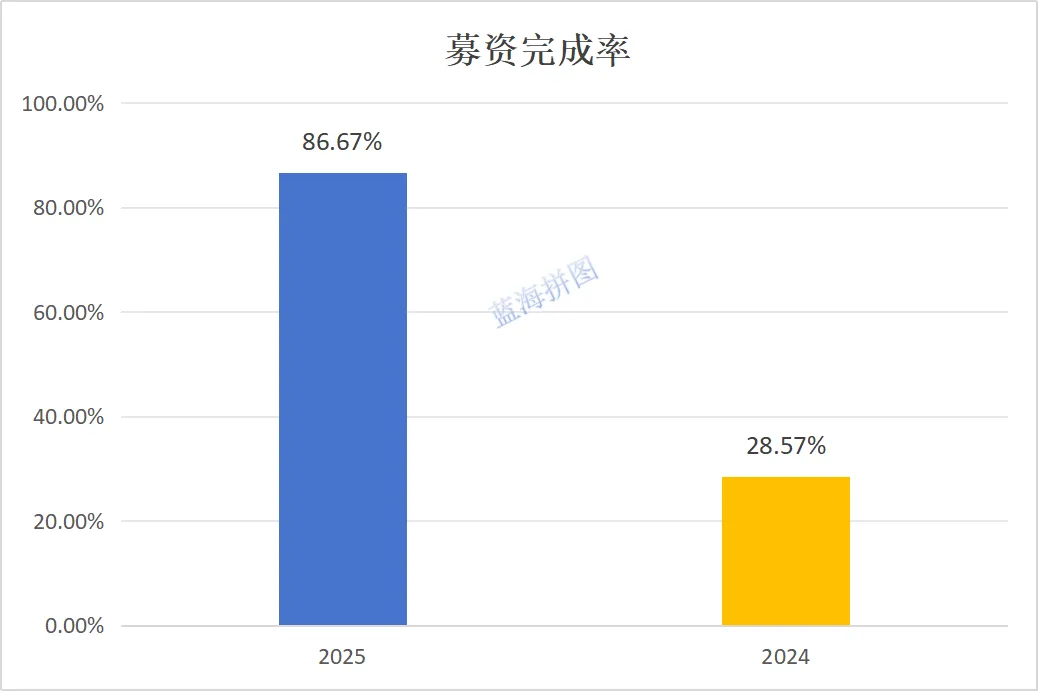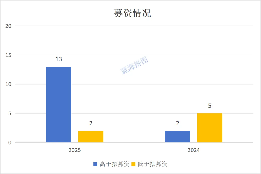 高于拟募资13家,低于拟募资2家,募集完成率86.67%。