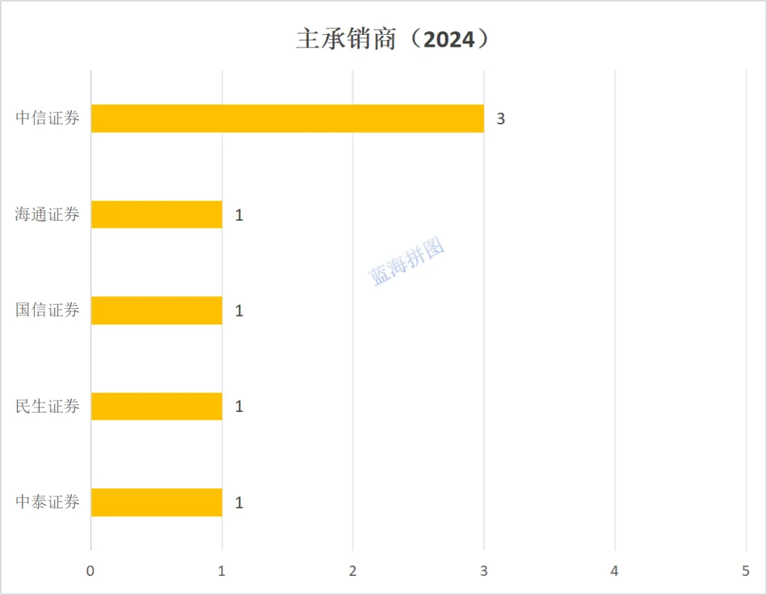 前三的主承销商分别是:中信证券(3)、国泰海通(3)、招商证券(2)。