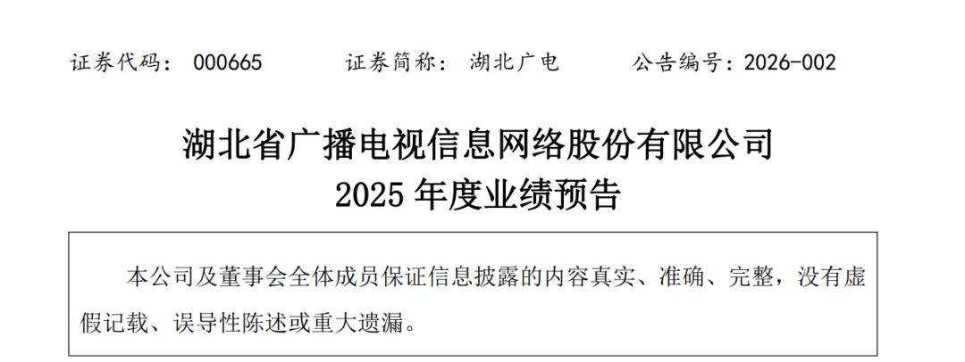 1月24日,湖北广电发布2025年度业绩预告。