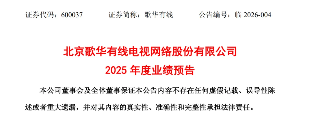 1月24日,歌华有线发布2025年度业绩预告。