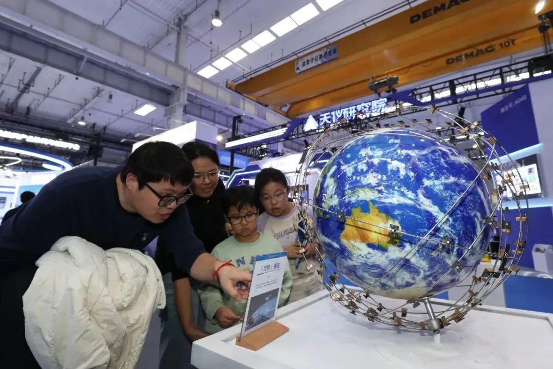 在空间应用与探索领域,银河航天则带来我国首款柔性太阳翼平板卫星“灵犀03星”及可实现星地直连的“翼阵合一”卫星模型,呈现卫星互联网技术的前沿突破。中科星图以数字地球为底座,融合人工智能、大数据等技术,构建覆盖数据、计算与应用的数字地球产品,推动空天信息服务体系的智能化发展。